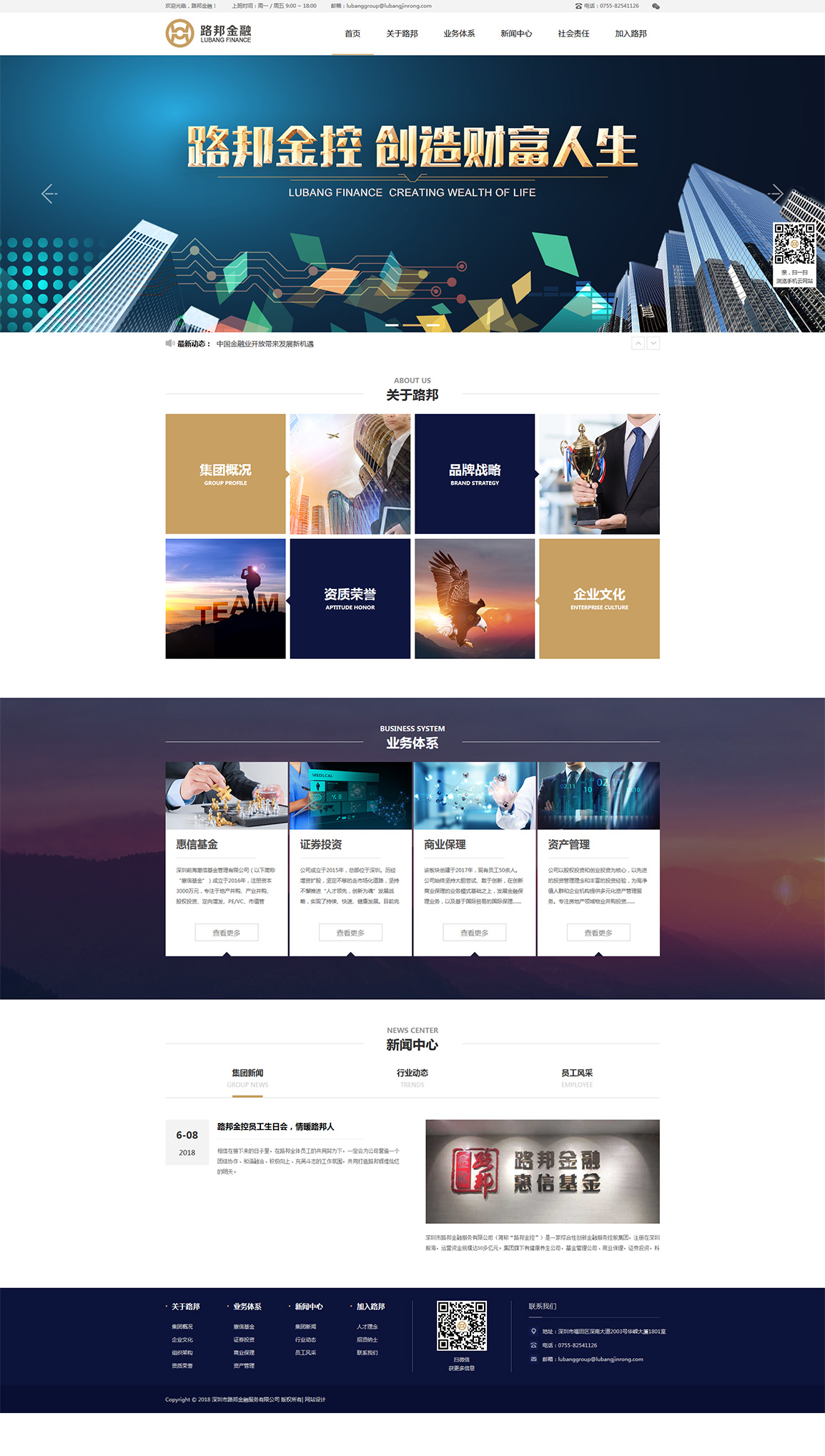 深圳市路邦金融服務(wù)有限公司由首頁,關(guān)于路邦,業(yè)務(wù)體系,新聞中心,社會責(zé)任、加入路邦等幾個模塊組成。整體設(shè)計風(fēng)格做到符合企業(yè)高科技感覺,配色新穎美觀,整體與企業(yè)logo配色相融合。網(wǎng)站排版適應(yīng)于多終端顯示,良好的用戶體驗度。
